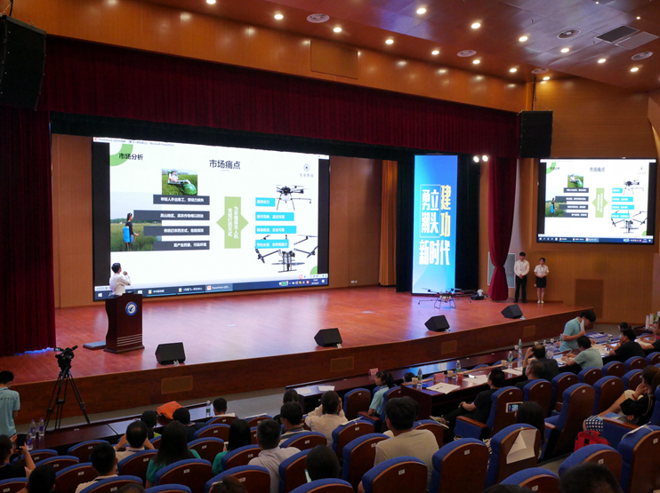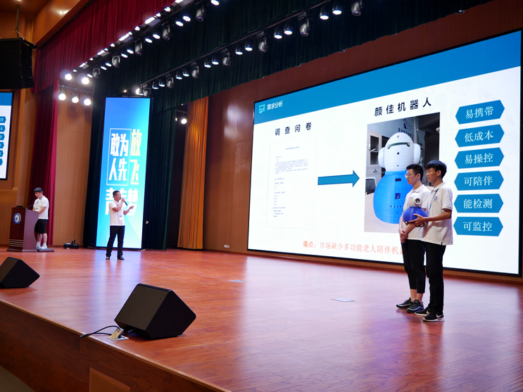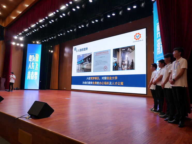 在汇心湖校区大学生活动中心,进入极速路演的队伍运用现代信息技术,结合自身的项目特色给观众带来一场场视觉、听觉和想象力的盛宴。“好多项目不仅很实用,而且创意十足,都是从我们身边的日常生活寻求灵感。为参赛选手的表现和他们的‘金点子’点赞!”观看路演的郭河同学说道。