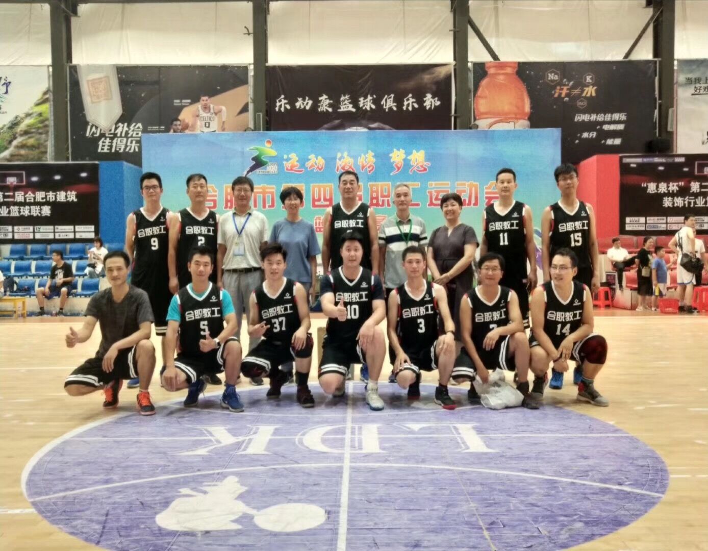 合肥市第四届职工运动会篮球比赛于8月10-15日在合肥市乐动康篮球俱乐部举行,共有37支代表队参加角逐。伟德官网代表队校长带头参赛、队员团结协作、教练精心指导、工作人员细心服务,在小组赛中伟德官网代表队以3胜1负,小组第二的好成绩晋级16强。进入淘汰赛,面对强有力的对手,大家沉着应战,认真打好每一球,赛出了实力,也赛出了风格,虽然最终以微弱的分差,无缘8强,但赛场上“合职教工”的英姿却成为一道亮丽的风景。