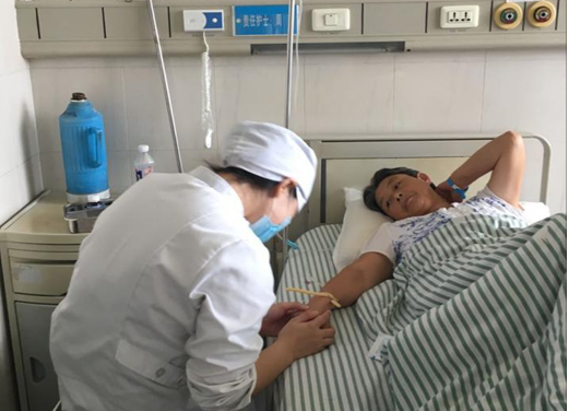 武思嘉同学在给患者做静脉输液(安医一附院)