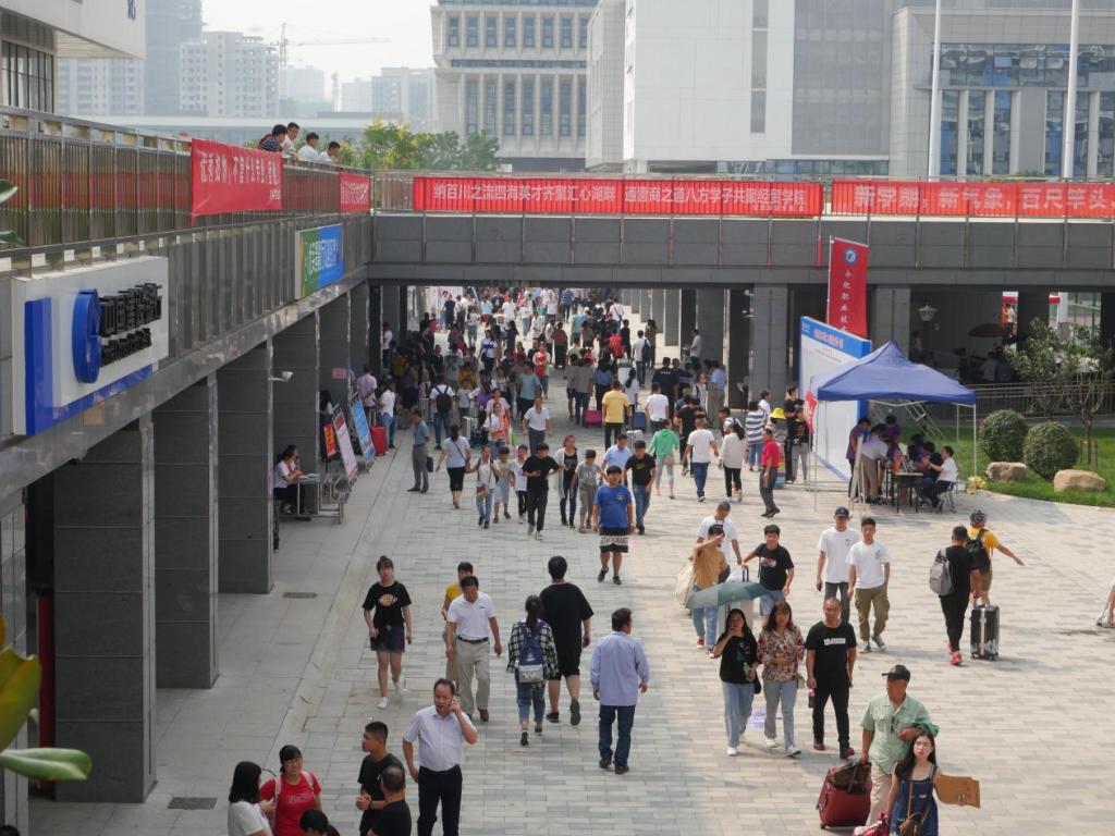 早上八九点,报道现场已是十分火热,校园大道上熙熙攘攘、人潮涌动。