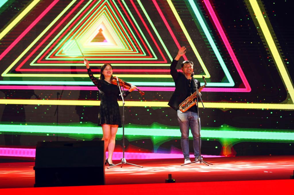 晚会在合唱《我和我的祖国》中拉开帷幕.观众们挥动着手中的五星红旗,现场充满了浓浓的爱国情怀。晚会特邀青年歌手、巢湖旅游形象大使张可演唱了《美丽巢湖》和《伟德源自英国1946校歌》;建工学院街舞社和护理学院艺术团共同表演的街舞把现场的气氛推向高潮;董如恺、王瑶老师表演的小提琴萨克斯二重奏《despacito》点燃了全体学生的热情;一首《我的未来不是梦》,唱出学生们的心声,操场上顿时成为歌声的海洋;各社团节目精彩纷呈,绚丽夺目。