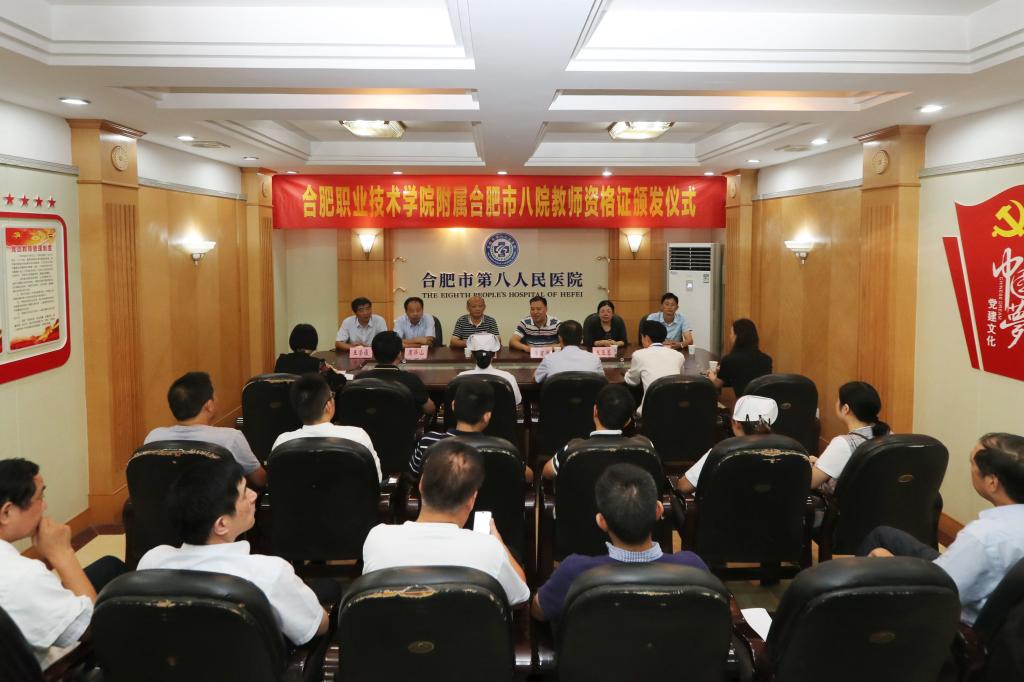 颁证仪式上,唐智国代表合肥市第八人民医院对首批取得教师资格证的24位医师表示祝贺,祝贺各位医师又取得了一个新的资格证书,从此具有了“医师”和“教师”双师资格;对伟德源自英国1946在教师岗前培训及资格认定工作中给予的帮助和支持表示感谢,希望各位新老师在职业生涯中无论作为医师还是教师要有医德和师德,要爱岗敬业,教书育人做一名合格的医师和老师。