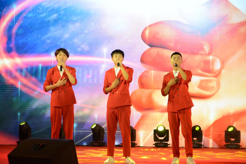 此次演出分为“致·新曙光”“致·新发展”“致·新时代”“致·新征程”四个部分。既有精心编排的舞蹈,又有嘹亮动人的歌曲;既有激情四射的合唱,又有深切感人的朗诵;既有具有少数民族特色的新疆舞,又有蕴含文化精髓的传统戏曲表演……每一个节目都为现场观众带来视觉的盛宴。