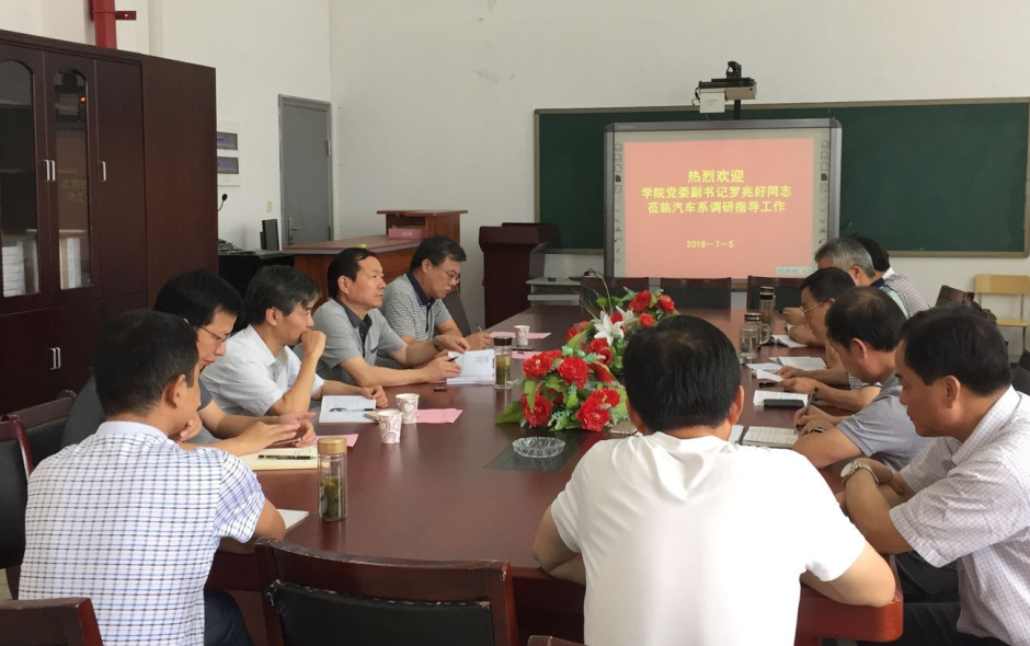 7月5日下午,学院党委副书记罗兆好、纪委书记金辉在学生处、办公室相关负责同志的陪同下来到汽车系召开座谈会,调研指导汽车系工作。汽车系主要负责人、各科室和教研室负责人以及教师、辅导员代表参加座谈会,汽车系副主任解云主持会议。
