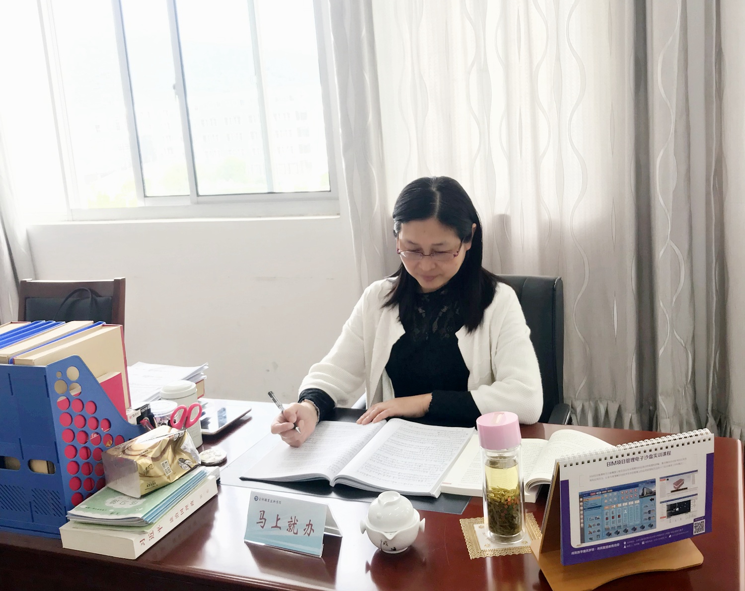 她深知教师仅具备必要的专业知识是不够的,还必须具有高尚的思想品质和道德情操,以身作则,以自身的榜样去感染、熏陶学生。她不但自觉端正师德、师风,严格执行各种规章、制度,更用自己的言行做好学生的典范。她在课堂上从未使用过手机,在各类会议上总是自觉将手机关机或调为静音状态。