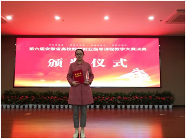 大赛从3月份启动,历时8个月,分高校初赛、全省半决赛和总决赛三个阶段。伟德官网刘惠老师从学校初赛、安徽省半决赛中脱颖而出,获得总决赛资格,全省共有18所本科院校、14所高职院校共32位教师晋级总决赛。决赛采用网评和现场评比相结合的方式,比赛主要从文字教案撰写、现场教学PPT演示及评委提问等环节来考察选手的教育教学水平和就业指导能力。