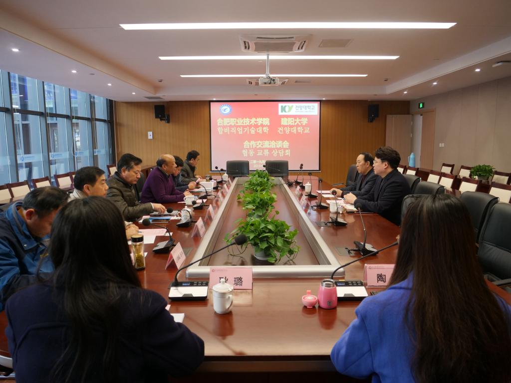 会上,周晓隆对韩国建阳大学一行的到来表示热烈欢迎,并简要介绍了学校情况。建阳大学国际交流院客座教授金亨熙先生介绍了建阳大学的办学情况,建阳大学国际交流院留学生招生及合作项目管理负责人高东延先生介绍了建阳大学的国际合作项目。双方就合作办学模式、专升本项目、师生互访、教师学历提升等方面进行了深入洽谈。