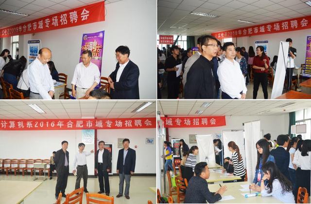 2016年5月28日上午,计算机系在图书馆二楼举办了2016届毕业生暨2017届实习生校园专场招聘会。合肥市区域近四十余家企业参加了招聘会,计算机系17届实习生和返校的16届毕业生近800人参加了招聘会。学院党委副书记胡其云、纪委书记金辉、副院长周晓隆、工会主席张广龙等院领导及有关部门负责人亲临现场指导工作。