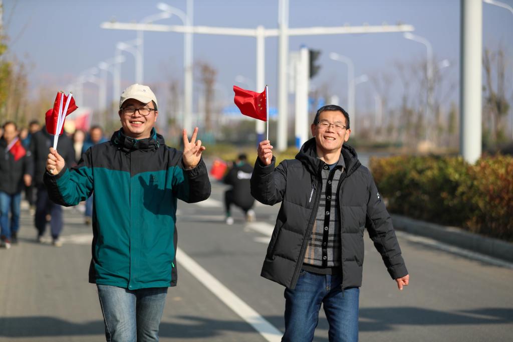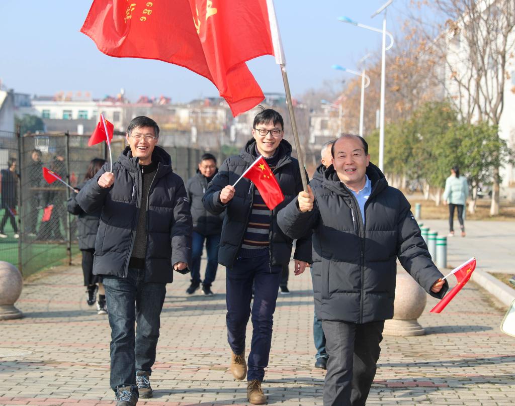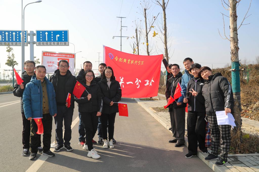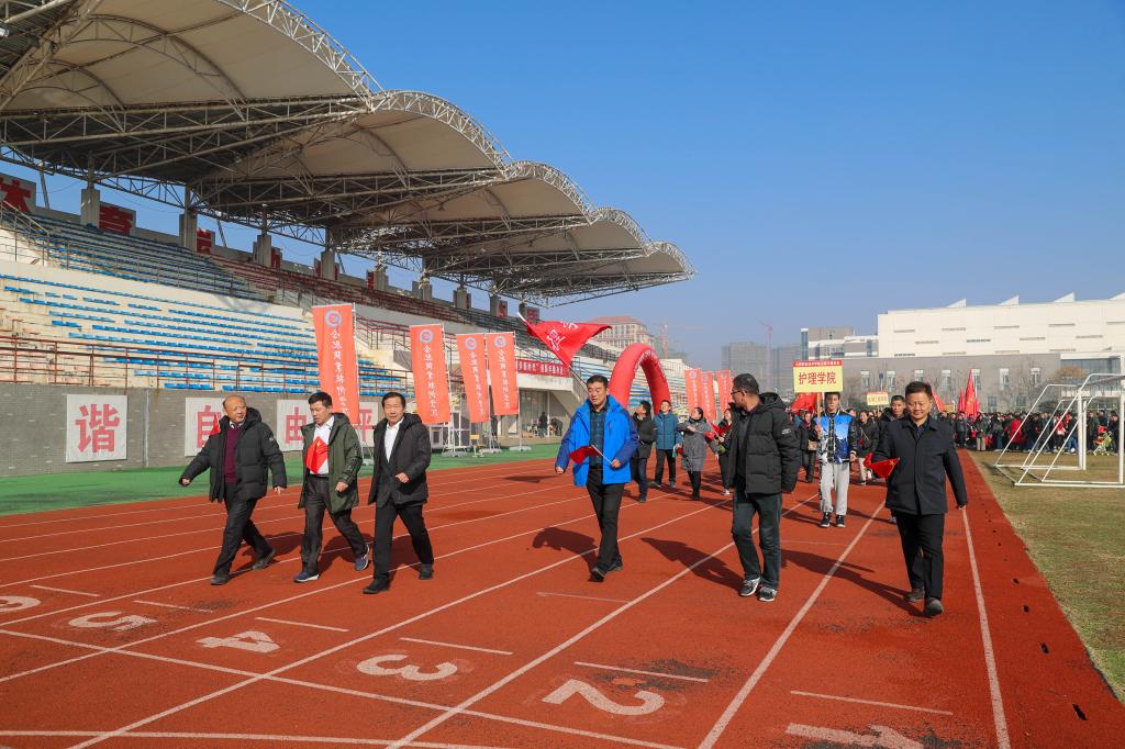 在鼓山校区田径运动场活动起点上,校领导班子成员一齐为健身走活动鸣枪发令。本次健身走活动精心设计了行进路线。大家步调一致、节奏有序,展示出团结协作、积极向上的精神风貌,每个人的脸上都洋溢欢乐的笑容和对新年的美好憧憬。