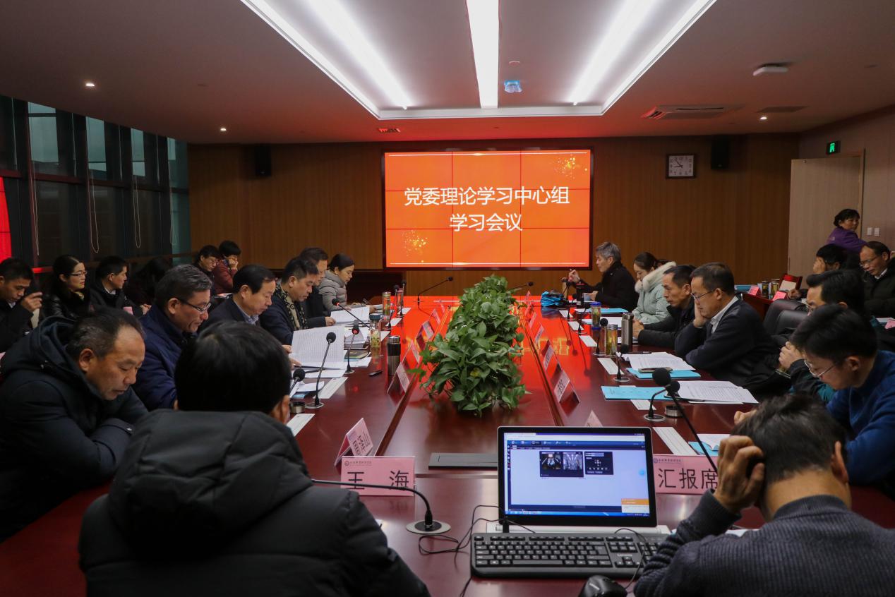 会议首先进行了党委理论学习中心组学习。党委书记罗兆好传达了习近平总书记在中央主题教育总结大会上的重要讲话精神。党委副书记胡其云领学了国家主席习近平发表的二〇二〇年新年贺词。党委委员、副校长孙兴林领学习近平总书记在十九届四中全会第二次全体会议上的重要讲话。会议还书面学习了教育部部长陈宝生发表在《旗帜》上的文章《推进教育治理体系和治理能力现代化》等重要内容。会议要求,全校上下要深入学习领会习近平总书记重要讲话精神,并结合学校实际抓好贯彻落实。