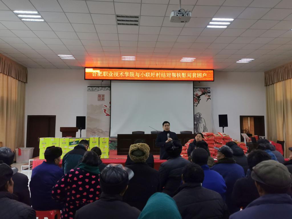 文化礼堂内,慰问品发放仪式上,胡其云代表学校对参与此次慰问活动的群众表达了亲切的问候和节前的祝福,鼓励大家新的一年在党的好政策和社会各界的帮助下积极主动克服困难,争取早日摆脱贫困迈向美好生活。