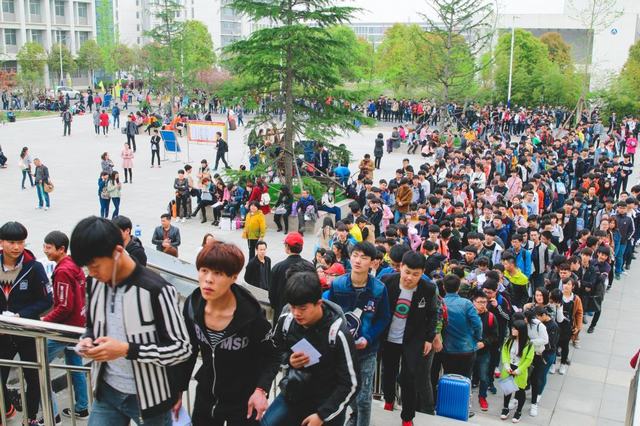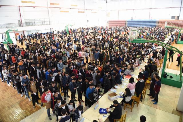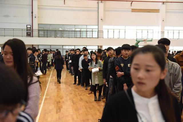 报名现场人头攒动,但却丝毫不显慌乱。考生们拿着报名材料,在工作人员的引导下自觉排成一列列整齐的队伍。