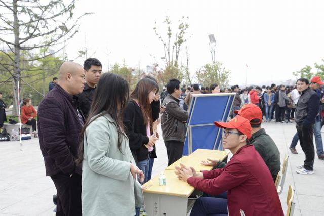 工作人员在为考生办理相关手续、发放报名材料,并耐心细致的解答考生们的问题。