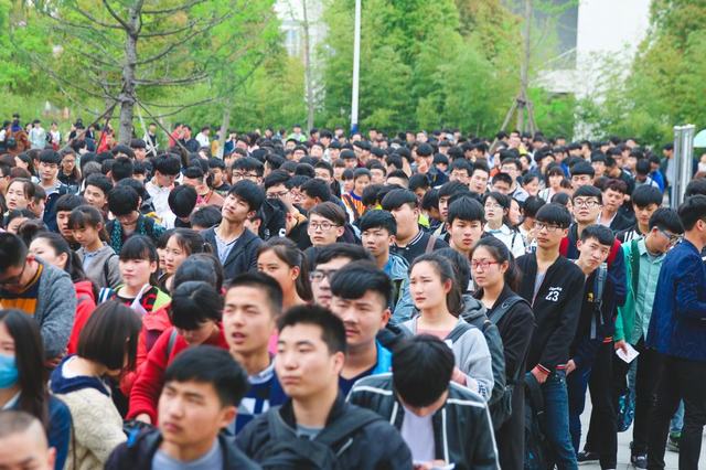 排队时,有的考生在与新认识的朋友小声交流,有的则不时关注着队伍的前方……等待也是一次人生的修行!