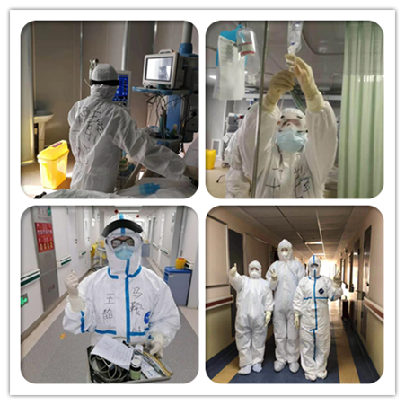 “因为我们是一家人,相亲相爱的一家人,有难必然同当。”这是王静的轻轻和唱,王静关爱病人,也时常被病人间的互助感动着,被病人的坚强激励着。当病人听出王静外地口音,得知王静来自安徽后竖起的大拇指;当ICU成立以来的首例病人出院;当因为训练有素和干练果敢,在遇到突发情况时,保证了病人的安全。在这个特殊而关键的时期,王静与病人的心越来越紧密,她勇敢守护生命,鼓励病人树立战胜疾病的信心。王静说,她知道“Patient”有2个译义,一个是“病人”,一个是“有耐心的”。她深知,照顾病人就要有耐心,平常需要,特殊时期更是如此,耐心是她的责任。6床的老大爷,不到半小时就会一次小便。每当递尿壶时,老人都不好意思,而王静会亲切地笑着回答:“大爷,没关系,排尿有利于排毒,我不嫌烦。”还有5床老奶奶,带着无创呼吸机,小便后,王静便及时为她的手上喷了快速消毒液。