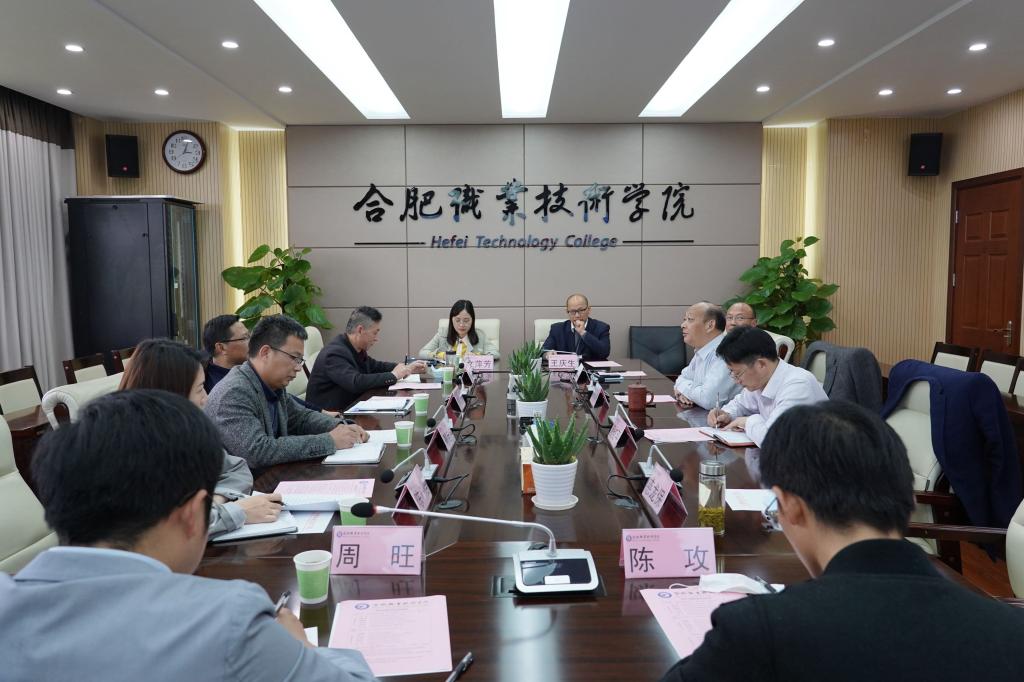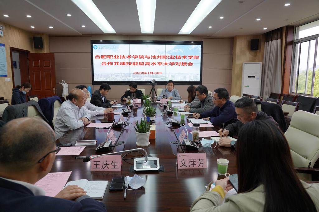 戴启培汇报了池州职业技术学院技能型高水平大学建设方案及结对共建工作方案草案,窦红平汇报进一步修改完善建设方案与结对共建方案的意见与建议。