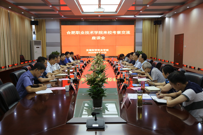 8月19日下午,校党委书记罗兆好、党委副书记胡其云及相关部门负责人一行7人赴安徽财贸职业学院考察调研。