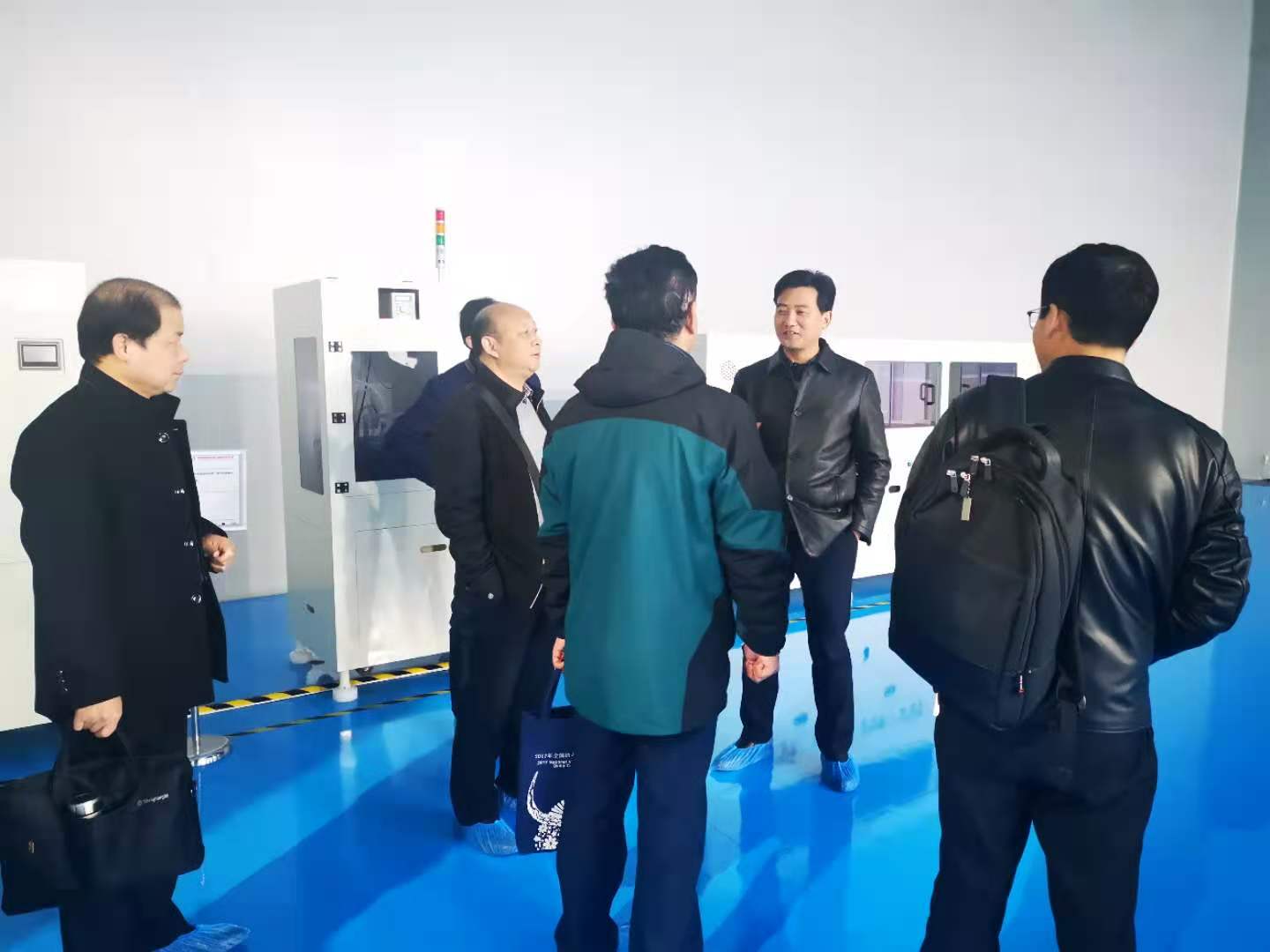 周晓隆一行先后参观了宏实高科研发中心、SPM室、智能色选机、风选机生产车间、洁净生产车间及宏实汽车集团展厅,工作人员详细介绍了公司的产品特点及市场前景,并现场进行演示。