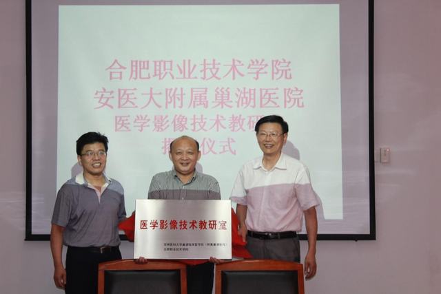 继5月23日我院与安徽医科大学巢湖临床医学院召开医学影像技术专业合作办学研讨会后,6月19日,我院与安徽医科大学巢湖临床医学院共建临床教学基地签字仪式在安徽医科大学巢湖临床医学院三楼会议室举行。会上分别就临床教学基地建设、技能培训中心建设、师资队伍培养机制、教学能力培养等方面加强合作事宜进行了深度协商与探讨。院长方志斌与安徽医科大学巢湖临床医学院院长李家斌代表各自单位在协议书上签字,并进行了医学影像技术教研室成立揭牌仪式。