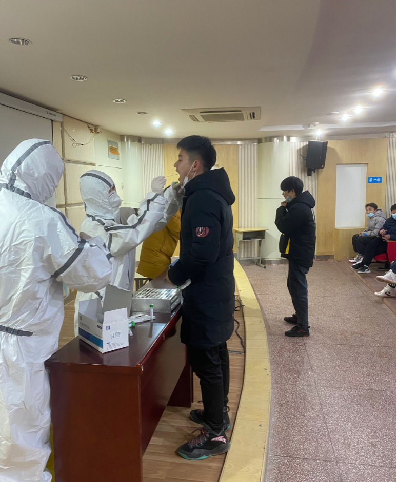 为抓实抓细常态化疫情防控下征兵工作,切实把好征兵体检第一关,1月6日,学校武装部组织学校春季应征入伍学生进行新冠病毒核酸检测,专门邀请合肥市第八人民医院医护人员在鼓山校区图书馆报告厅对150余名学生进行集中采样,检测结果为阴性方可参加下步征兵体检工作。