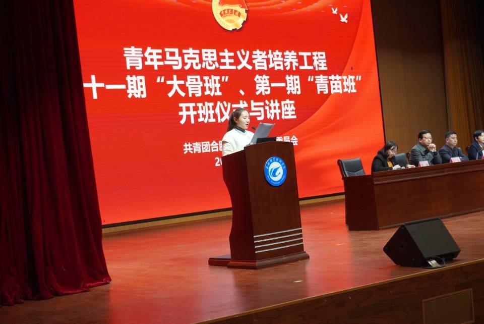 仪式在高昂的团歌声中拉开帷幕,校团委副书记邹坤首先介绍了第十一期大骨班、第一期青苗班基本情况。20级城轨工程班焦航代表新学员发言,表示进入“青马班”之后,不能松懈,要以严格的标准来要求自己,积极听讲、勤于总结。校团委梁雯婷老师代表指导教师发言,她用青春和使命、作风和能力、责任和实践这三组词阐释了团员青年应有的担当,并鼓励团员青年要胸怀祖国,提高自身素质,勇于肩负时代赋予的历史使命。