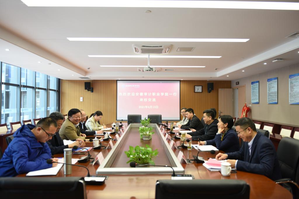 4月13日上午,安徽审计职业学院党委委员、副校长杨友山一行赴伟德官网调研文明校园创建工作。伟德官网党委副书记胡其云在汇心湖校区接待了客人,并召开了座谈交流会。宣传部、文明办、办公室、学生处等部门参加了座谈。
