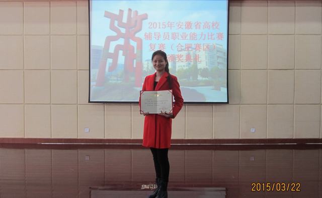 3月20日至22日,由省委教育工委、省教育厅主办的2015年安徽省高校辅导员职业能力比赛(合肥赛区)复赛在安徽工商职业学院举行,来自合肥区域15所本科高校、20所高职院校的50位选手参加了角逐。比赛分为笔试和现场两种形式,涵盖辅导员基础知识测试与博文写作、主题班会、主题演讲、案例分析和谈心谈话五个项目。
