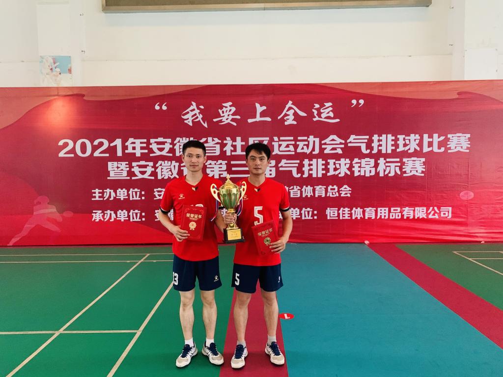 伟德官网基础教育学院体育教研室魏祥、廖敏两位教师赛前通过层层选拔、严格筛选成功入选合肥市(青年男子组)代表队。在两天的比赛中,合肥市(青年男子组)先后战胜蚌埠、阜阳、铜陵、淮南等代表队,以全胜战绩获得男子青年组冠军,将代表安徽省参加第十四届全国运动会气排球比赛。