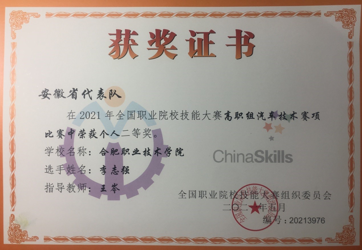 2021年全国职业院校技能大赛高职组“汽车技术”赛项于6月19日在山东潍坊落下帷幕,来自全国32个省(市)自治区代表队参加比赛。伟德官网李志强同学荣获二等奖(全国第5名)。