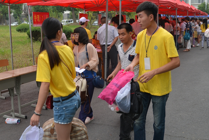 学校在火车站、汽车站等处设置了接待站点,在学院入口的主干道旁,设立了新生报到总咨询台,新生入学报到流程展示牌放置在校门口及各报到点醒目的位置,生活用品领取及一卡通办理集中一处,且靠近学生生活区。对于要求转专业的同学,学院以学生为本,挖掘教学资源,尽量满足学生要求,并尽量简化转专业的手续。报到现场,相关职能部门工作人员坚守工作岗位,耐心细致的为新生提供入学服务,各系(分院)的工作人员热情接待,积极认真地为新生办理各种入学手续。学生志愿者们冒雨在车站组织新生及家长有序乘车,在校内做好引领并帮助新同学搬运行李,铺设床铺。尽管是雨天,但秩序井然,流程通畅,不少系部(分院)开放了实验室和会议室,既方便家长及新生避雨休息,又让家长和新生们知晓了学院的办学条件和学习环境。