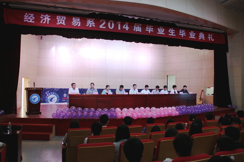5月25日下午,经贸系举行了隆重热烈的2014届学生毕业典礼。院领导方志斌、胡其云、孙兴林、张广龙等亲临毕业典礼现场,方志斌院长在毕业典礼上代表学院做了深情的发言;毕业典礼结束后,院领导和学院相关部门负责人还和经贸系师生共同观看了经贸系欢送2014届毕业生文艺演出。这一切让广大毕业生切实感受到了学院对他们的重视和关怀。5月24日下午在经贸系会议室,举行了毕业生座谈会,参加座谈会的二十多位同学分别介绍了自己顶岗实习的情况,畅谈了在单位实习的感受,也为学院更好发展提了很多有益的建议。各个班级根据各自的情况也分别开展了不同形式的纪念活动,各辅导员通过不同方式与毕业生充分交流。这些活动增进了毕业生与母校师生间的感情,让毕业生带着美好的心情奔赴新的征程。