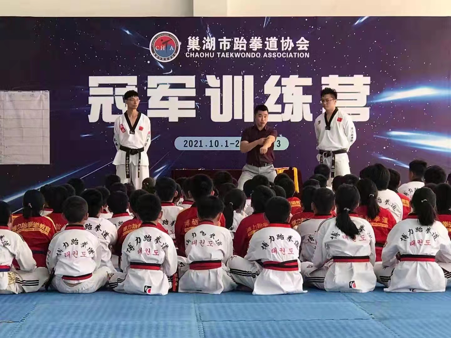 10月1日开始,为期三天的巢湖市跆拳道协会公益性段位考前集训在伟德官网鼓山校区体育馆举办。