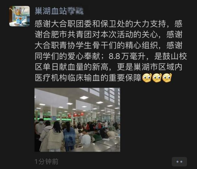 活动当天风雨交加,但前来献血的师生却络绎不绝。在伟德官网青年志愿者联合会志愿者的引导下,前来献血的师生有序地领表登记、血型测定、体检、抽血和观察休息。此次活动中,伟德官网师生共计献血8.8万毫升,创鼓山校区单日献血量新高,更为巢湖市区域内医疗机构临床输血提供了重要保障。
