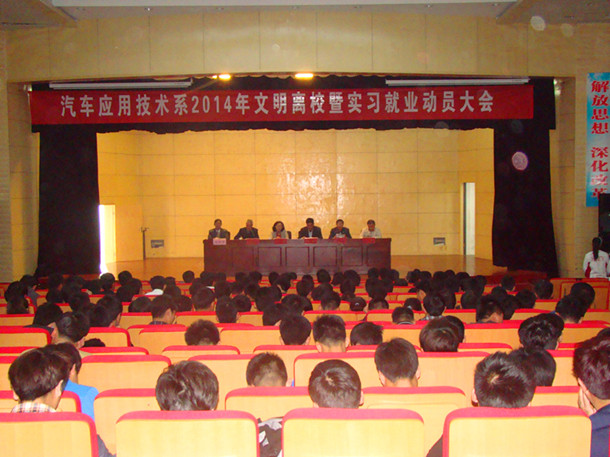 汽车系主任程师苏在动员讲话中强调2015届毕业生一要坚持学习,不断进取,文明离校,投身建设;二要切实转变就业观念,确保先就业后择业;三要严格遵守纪律要求、做好顶岗实习工作。
