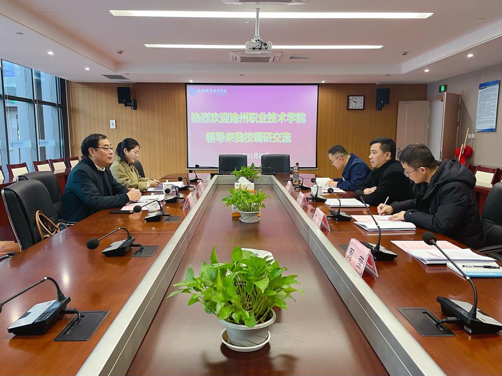 11月26日,池州职业技术学院党委副书记戴申付、组织人事处副处长曾叶纯来伟德官网调研交流。校党委副书记胡其云及组织人事部相关工作人员参加交流会。