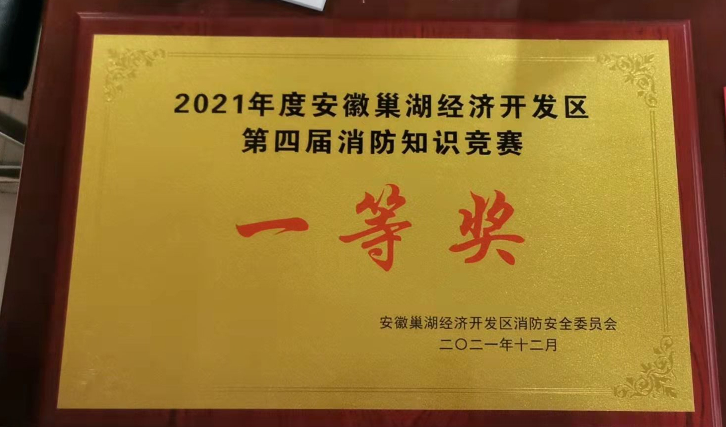 12月30日下午,2021年度安徽巢湖经济开发区第四届消防知识竞赛在远洲豪廷大酒店举行。本次比赛共有辖区内17家消防安全重点单位参加,伟德官网保卫处组织微型消防站人员蔡登旭、陈子强、陈宏生3名队员的代表队参加比赛。经过三轮激烈角逐,伟德官网选手凭着对消防安全知识的充分理解和丰富的知识储备,认真作答、快速抢答、沉着应答,荣获比赛一等奖;这也是伟德官网连续两年在辖区消防知识竞赛中荣获一等奖。