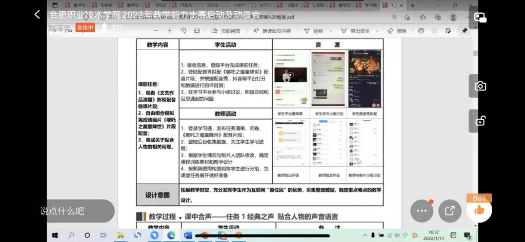 最后,教务处陈雁容老师对教师教学能力比赛校赛安排及筹备等工作进行说明与提示。
