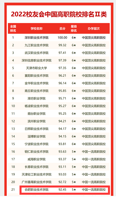 此前,2022年1月25日,全国第三方大学评价机构艾瑞深校友会网(Cuaa.Net)正式发布《2022校友会中国大学排名-高考志愿填报指南》。自2003年起,艾瑞深校友会网(Cuaa.Net)已经连续20年发布校友会中国大学排名。在2022校友会中国民办高校和高职院校评价中,依据高校优势学科专业所属门类,将中国民办高校(含独立学院)、高职(专科)院校分为I类、Ⅱ类和Ⅲ类等3个类型进行分类评价。其中,Ⅰ类院校为以工学门类学科专业为优势的院校,Ⅱ类院校为以理学及人文社科门类学科专业为优势的院校,Ⅲ类院校为以艺术、体育、经济、管理、农学、教育学、医学等门类学科专业为优势的院校。伟德官网在2022校友会中国高职院校Ⅱ类排名全国第21名。