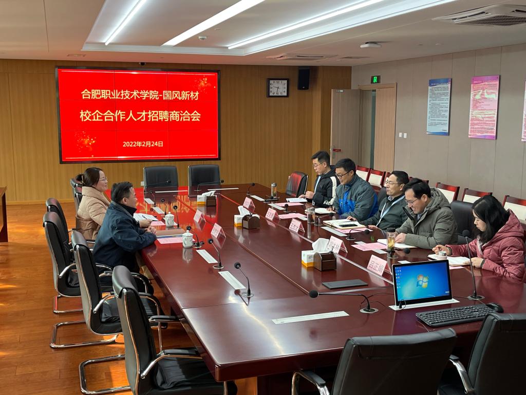 王杰才介绍了学校的专业设置情况与近年来的办学成果,并重点介绍了学校在人才培养等方面的特色成效,希望通过此次洽谈,双方能够在实习基地建设、订单班培养、产业学院共建等方面逐步开展合作,有效实现资源整合,优势互补,共同为合肥地区经济的发展做出贡献。