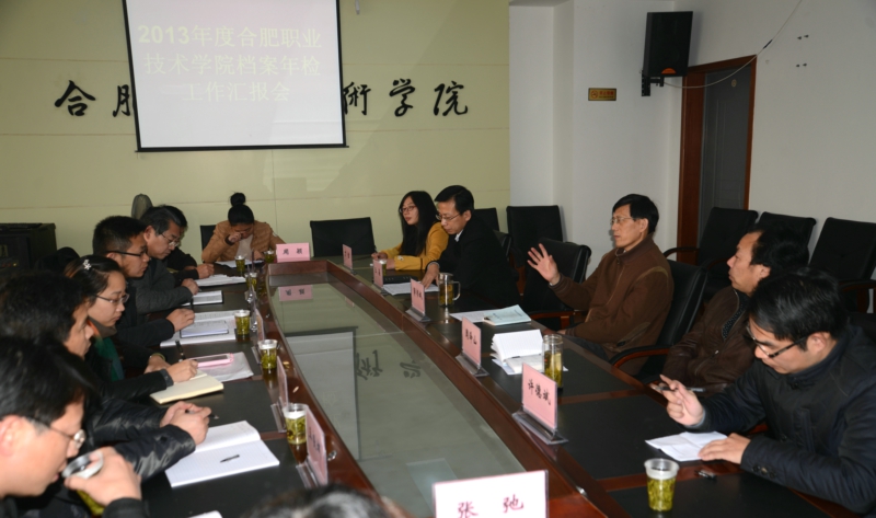 12月4日下午,由省档案局标准化建设处副处长汪海峰带队,以省档案局、省教育厅、省高校档案协作组组长单位联合组成的省直单位档案年检工作组来我院检查档案工作,院长方志斌、副院长茆书斌及党政办主任周泽山、副主任王海、综合档案室档案工作人员参加了会议。