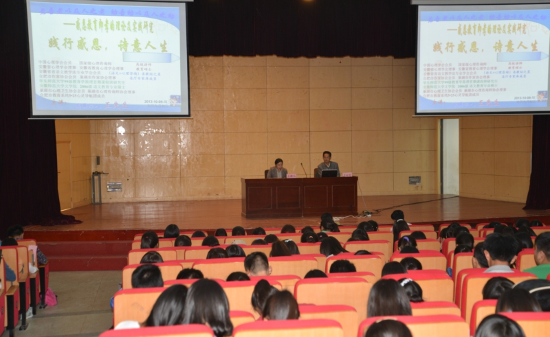 这次的素质大讲堂邀请到的是中国心理学会会员、国家级心理咨询师、合肥市作家协会会员王时忠老师。讲座的题目是“践行感恩,诗意人生”。