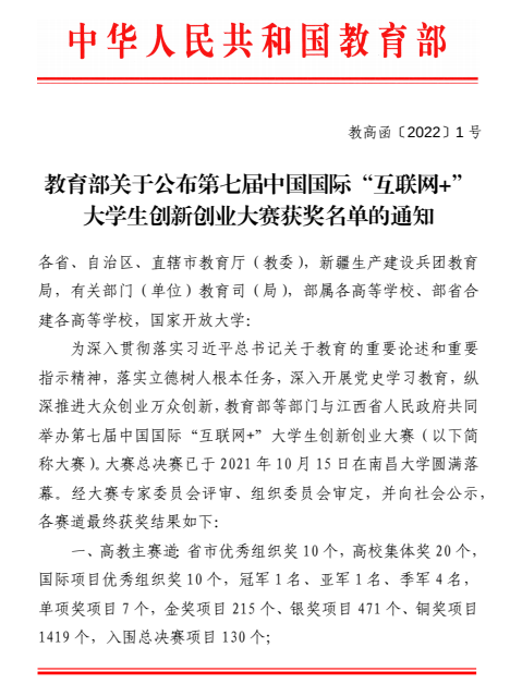 “互联网+”争金夺银。2021年,学校创造性提出“院长抓质量、书记抓数量”的战略,在第七届中国国际“互联网+”大学生创新创业大赛中,国赛获奖4项(银奖1项、铜奖3项),省赛获奖45项(金奖16项、银奖4项、铜奖25项),创下历史新高。
