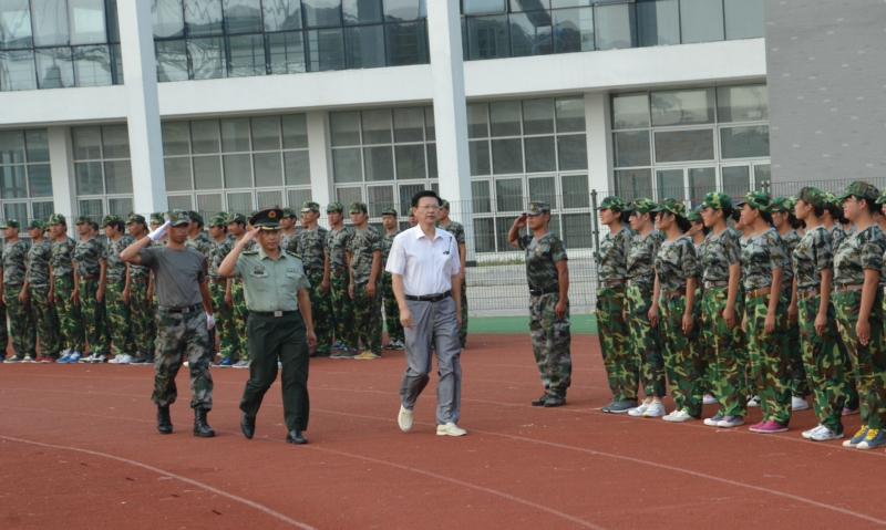 院长方志斌在军训团团长杨新勇的陪同下检阅了参训的全体2013级新生。3000多名参训学生组成的整齐方队,在激越嘹亮的口号声中,以挺拔的军姿、威武的军容接受了方院长的检阅,展现了我院大学生昂扬勃发的精神面貌。