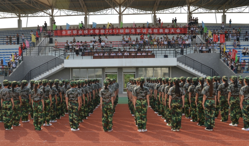 9月18日下午,我院2013级新生军训总结表彰大会在田径运动场隆重举行。院党政领导丁家康、方志斌、胡其云、孙兴林、金辉、汤先觉、张广龙以及南京军区军训处处长徐方东、南京军区淮南国防教育基地主任杨新勇出席了大会。大会由院党委副书记胡其云主持,各系(分院)、各部门负责人,各新生班级辅导员(班主任),全体2013级参训新生、军训教官和部分教师参加了大会。