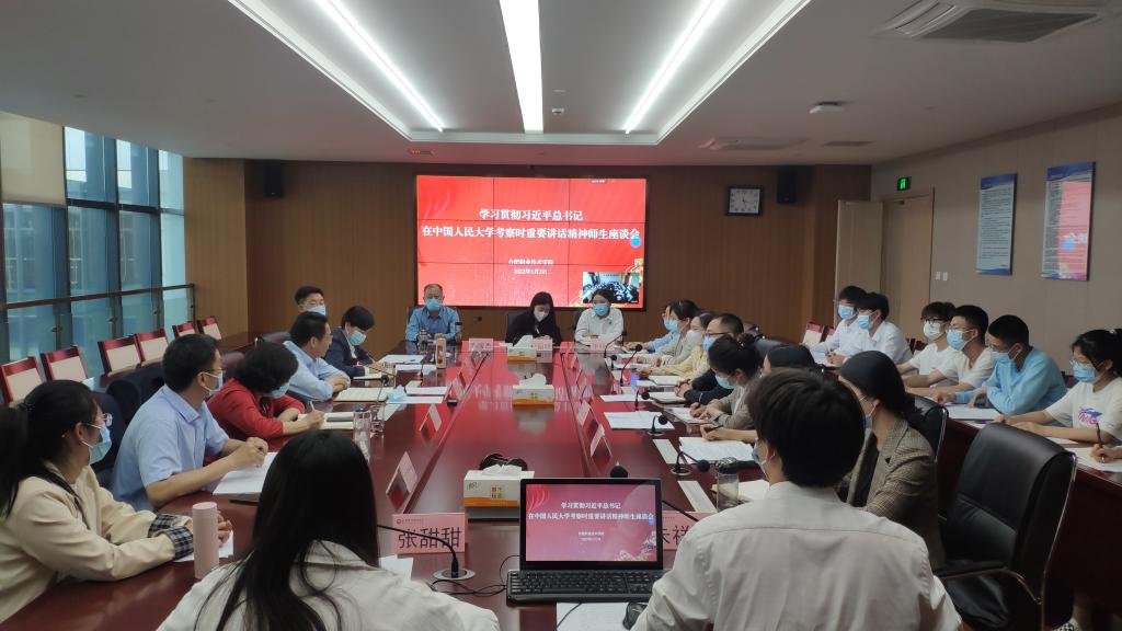 座谈会开始前,现场师生共同观看了新闻联播相关报道,集体学习了习近平总书记在中国人民大学考察时重要讲话内容。