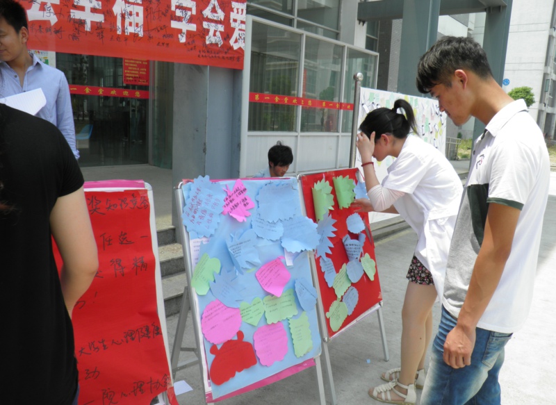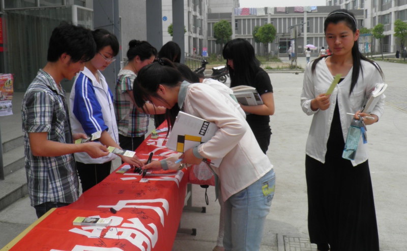 作为“5.25全国大学生心理健康日”主题活动的主要内容,由我院心理健康教育指导中心组织的“心灵相约,与你同行”专题活动成功举行。系列宣传活动为期一周,包括心理健康大型签名、问卷调查、心理知识竞答、心声留言板、心语传话筒等活动,于5月20日到24日中午在学院第一食堂门口进行。