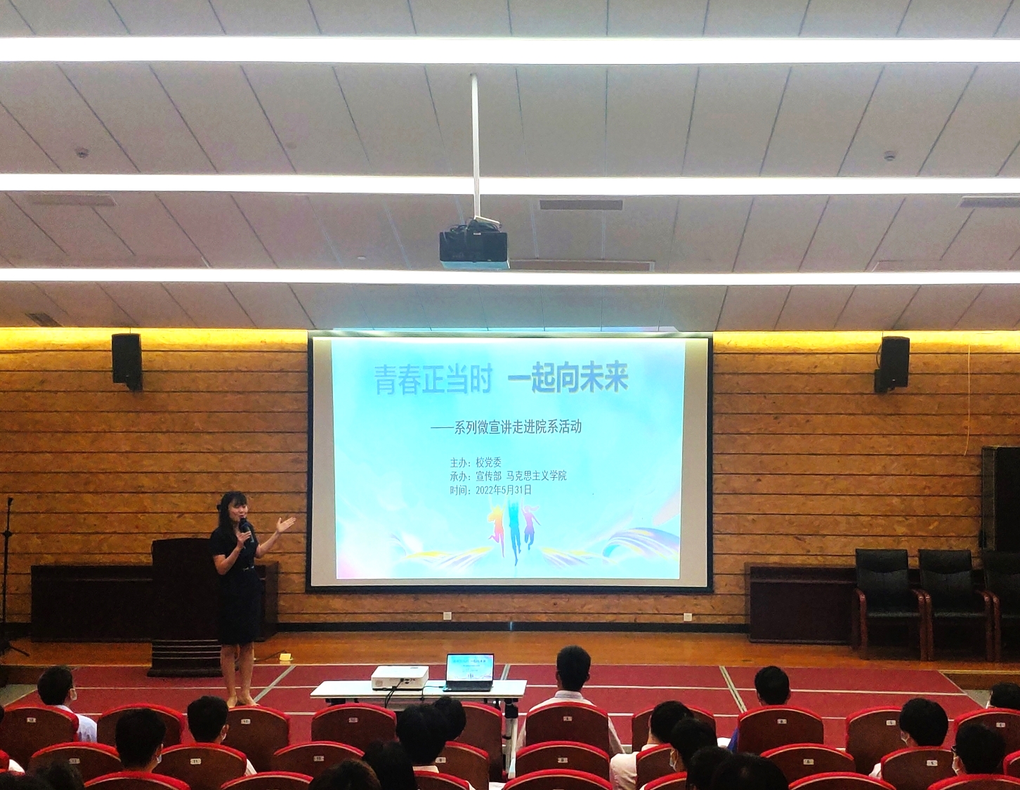 “青春正当时 一起向未来”主题系列微宣讲第一讲邀请到马克思主义学院吴敏洁老师,题目为《船,说中国精神》。吴敏洁老师从南湖红船、渡江帆船、宇宙飞船说起,和现场的同学们分享了以爱国主义为核心的民族精神和以改革创新为核心的时代精神的内涵实质,号召广大青年继承与发扬中国精神中的青年力量,练就过硬本领,展现青春担当,克服前进道路的一切困难,做勇立时代潮头的“弄潮儿”,为推动国家发展与时代进步而不懈奋斗,为实现中华民族伟大复兴不断砥砺而行。