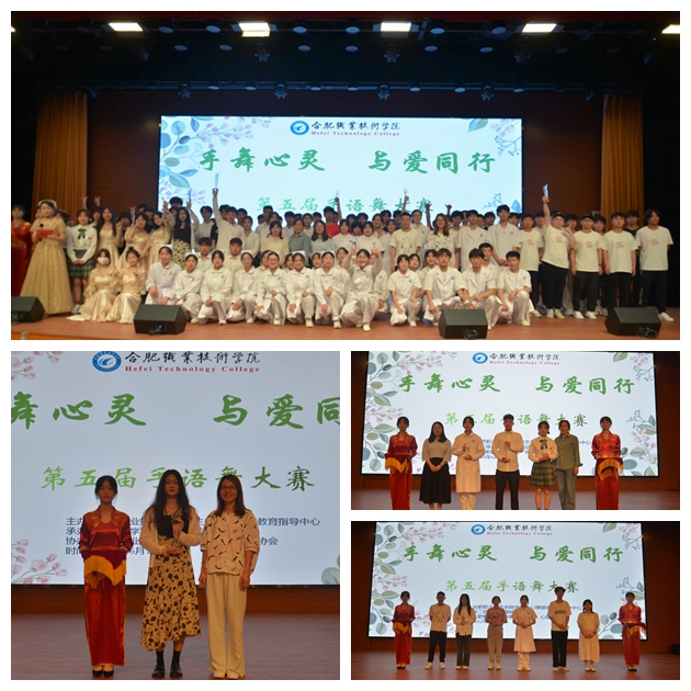 温馨的音乐,灵动的手语,璀璨的舞台,热情的观众,合职学子集聚一堂。来自各二级学院共计十六支参赛队伍的表演精彩纷呈,尽显风采。满满正能量的《燎原四方》,青春激扬的《New Boy》,活力四射,动作整齐划一,点燃了在场每一个人的热情。天使般真情演绎的《平凡天使》、轻扬曼舞的《这世界那么多人》用无声的手语划出了唯美,深深感染了在场的每一位观众。《听我说谢谢你》因为有你,温暖四季;《灯火里的中国》青春婀娜,胸怀辽阔;《守护着我的光》不惧挫折,拥抱灿烂;《夜空中最亮的星》青春梦想,坚持追随;《一起向未来》分享力量,努力前行。同学们带着年轻的底气与冲劲,向每一颗年轻的心展示着热爱的力量……别出心裁的队形转换,细腻流畅的动作展示,舞蹈与手语巧妙结合,勾勒出一幅幅动人的画面,手语之美,尽显其中。