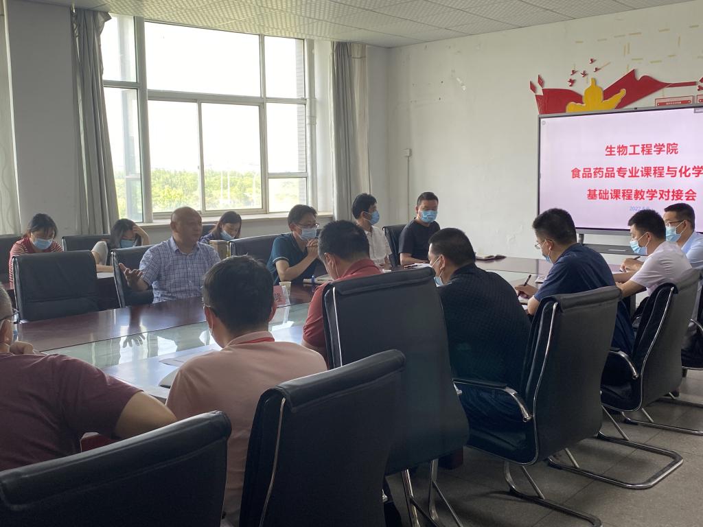 6月8日下午,副校长周晓隆教授,教务处处长(主持工作)窦红平教授深入生物工程学院参加“药品食品专业课程与化学类基础课程教学对接会”教研室活动。生物工程学院院长刘修树,药学教研室、食品教研室及生物基础教研室负责人,以及涉及化学课程的教师代表参加活动。会议由生物工程学院副院长方丽波主持。