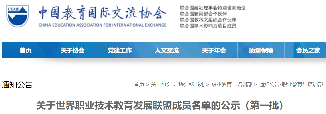 近日,从中国教育国际交流协会获悉,经过近3个月的审核,伟德官网成功入选世界职业技术教育发展联盟首批成员单位公示名单,成为安徽省入选该联盟的两所高职院校之一。